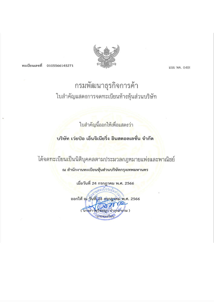 泰國(guó)分公司:偉柏工程安裝有限公司(WEIBO ENGINEERING INSTALLATION CO., LTD.)